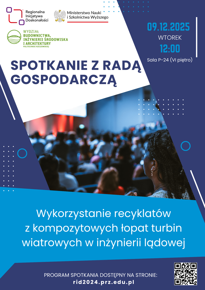 W części ogólnej spotkania przedstawione zostaną wyniki jednego z zadań realizowanego w ramach projektu RID: „Wykorzystanie recyklatów z kompozytowych łopat turbin wiatrowych w inżynierii lądowej".